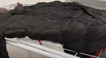 Сушити пуховик можна в сушарці при низькій температурі, але найчастіше безпечніше дати йому висохнути природним способом. При цьому не варто вішати виріб - краще розкласти його горизонтально, щоб зберегти форму та рівномірність наповнення.